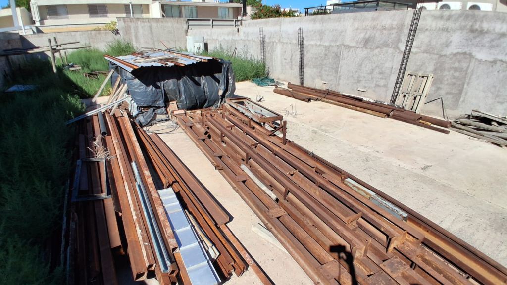 La construcción cuenta con obra civil ejecutada, fundaciones realizadas, vigas de vinculación y platea de nivelación. Los materiales acopiados incluyen el sistema de cerramiento Newpanel, que garantiza una eficiencia energética del 60%, una construcción rápida y una terminación interior de calidad.