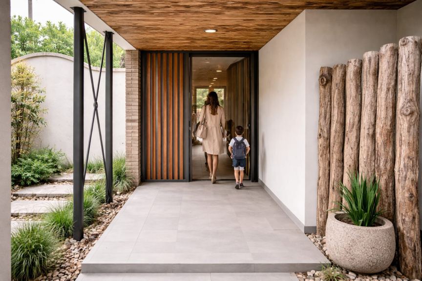 El proyecto de la casa incluye una distribución que privilegia las orientaciones norte y este, garantizando espacios luminosos y confortables. En la planta baja, encontrarás un amplio living-comedor, cocina-comedor con salida a un deck frontal, lavadero independiente, baño social y cochera para dos vehículos. En la planta alta, se encuentra un estar de recepción, una suite con vestidor y baño privado, y dos dormitorios secundarios con vestidor y baño completo.